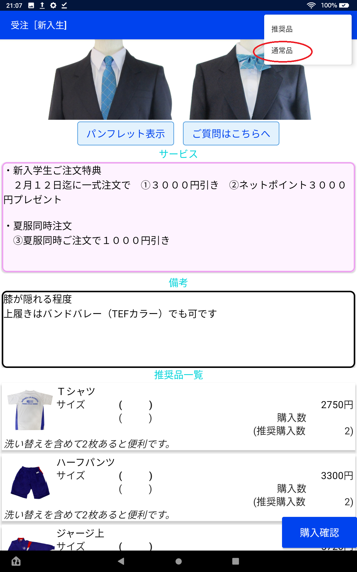 該当の学校ページに並んでいる商品群は、その学校に入学するのに販売する商品群です。基本的にはこの商品群の中から必要なものを選んでもらい、それ以外の商品を間違って購入しないようにするためのものです。(例男子が間違って女子ネクタイを購入してしまうなど)