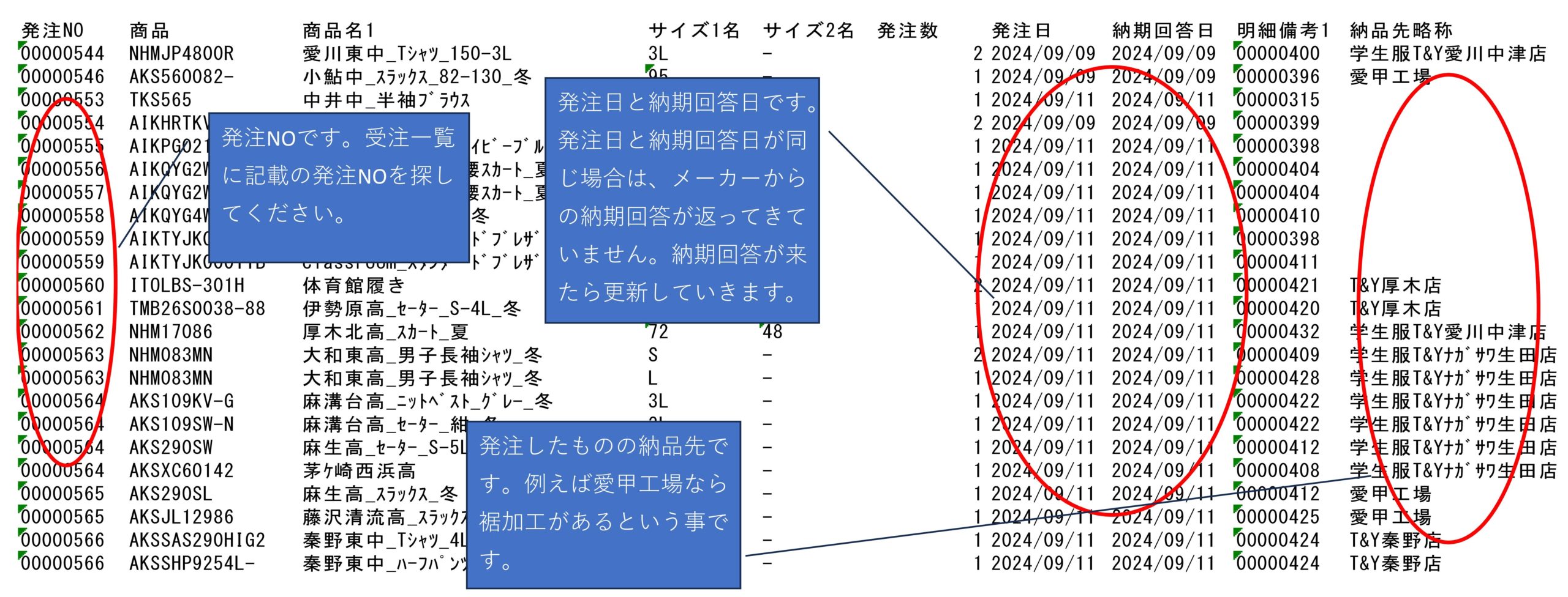 客注納期フォルダに「客注一覧」と「発注納期回答」が格納されています。適宜確認してください。